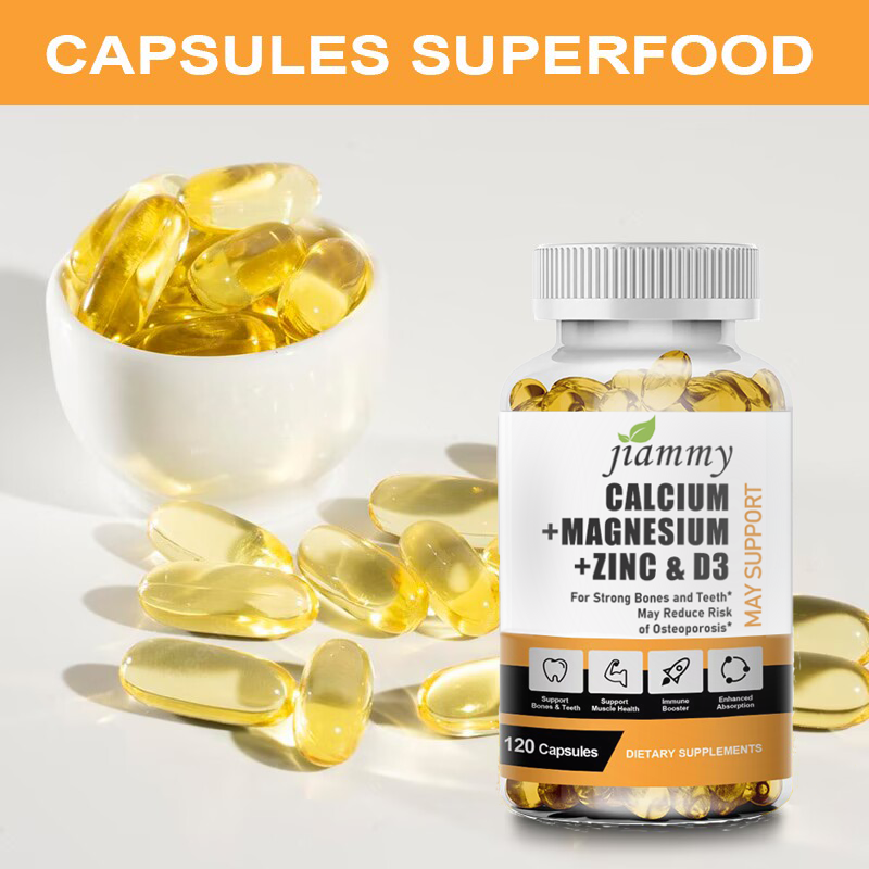 Calcium Magnesium Zinc + Vitamin D3 Capsules promote muscle relaxation, enhance bone health, and effectively prevent and improve osteoporosis 120 Vegetarian Capsules